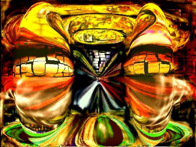 und gelb, das Cyberplastik flog in alle Richtungen, nur unterbrochen von den trockenen